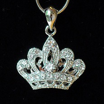 CROWN NECKLACE - CN109 .75" Clear stones, Snake chain $15